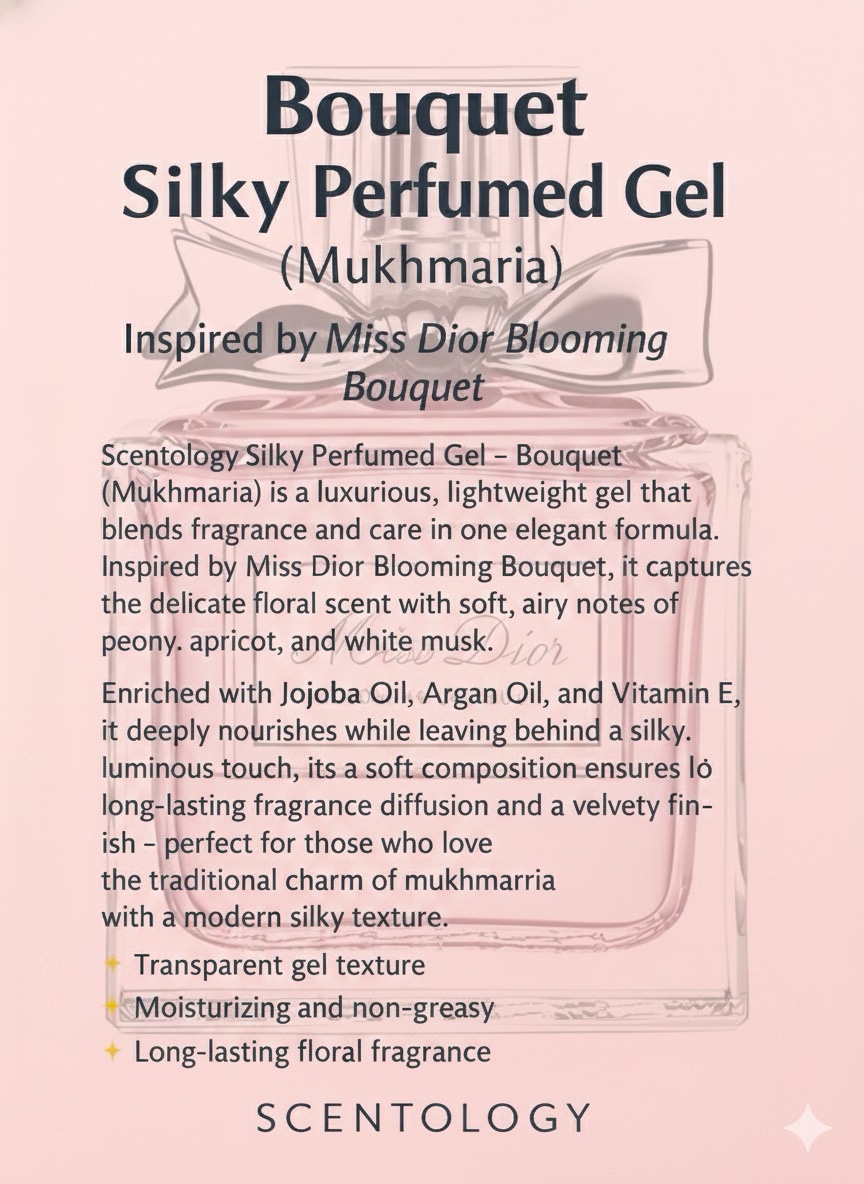 Experience pure elegance with Bouquet Silky Perfumed Gel, a luxurious and lightweight mukhmaria that blends long-lasting fragrance with a silky, skin-loving finish.