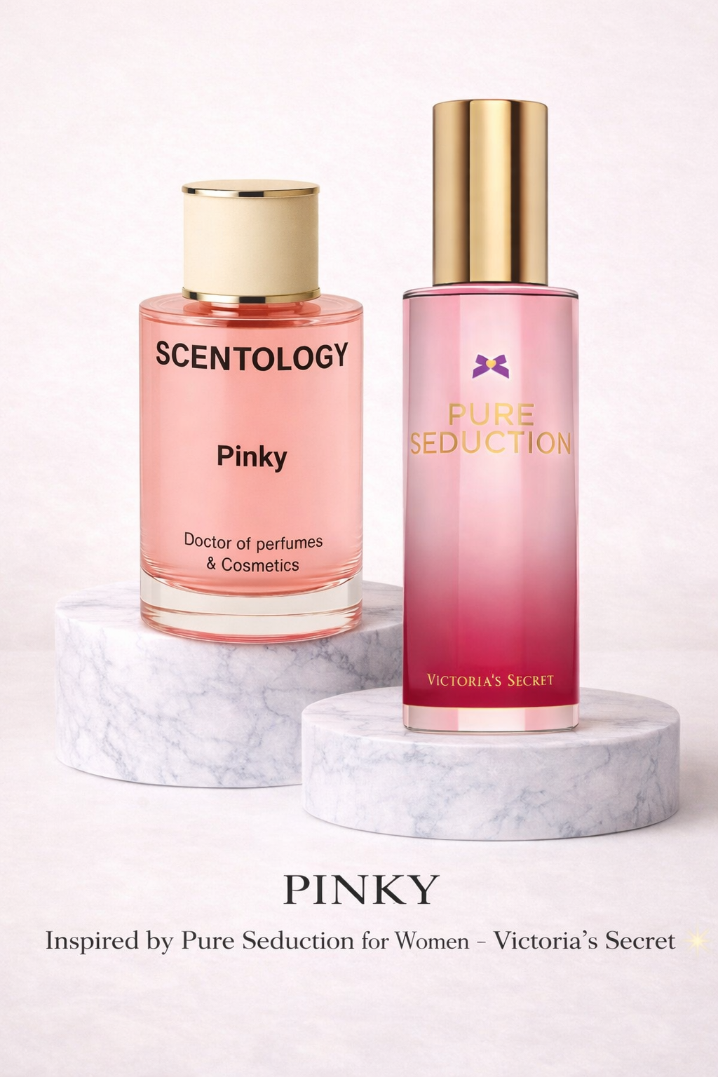 Pinky by Scentology is a playful fruity-floral fragrance inspired by Pure Seduction by Victoria’s Secret. It captures youthful femininity with a juicy fruit opening, soft floral heart, and sweet delicate finish that feels flirty, fresh, and irresistible.