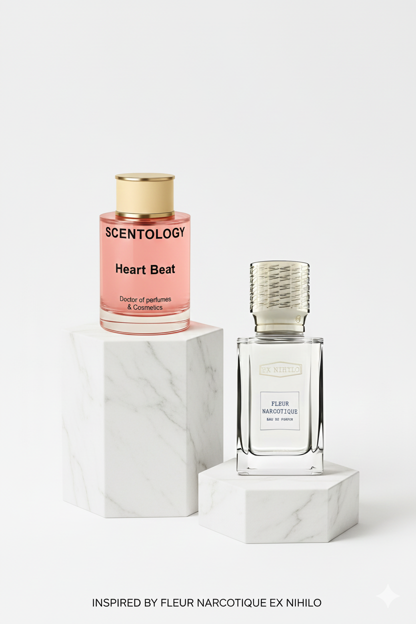 Heart Beat is a modern floral fruity perfume inspired by Fleur Narcotique by Ex Nihilo, created for lovers of clean, elegant, and addictive fragrances.