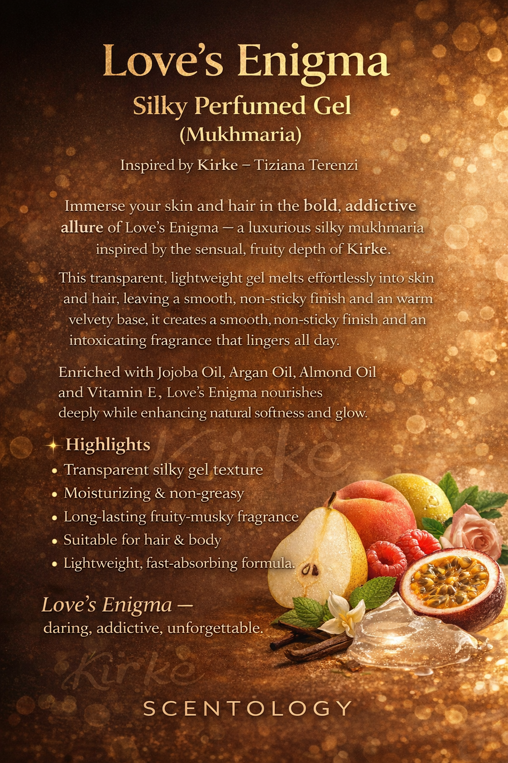 Immerse your skin and hair in the mysterious, addictive allure of Love’s Enigma Silky Perfumed Gel — a luxurious, lightweight mukhmaria inspired by the bold, fruity-musky character of Kirke.