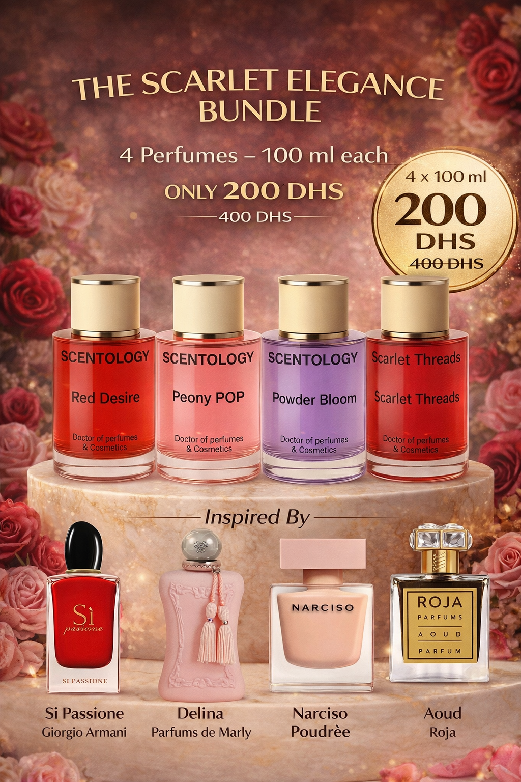 Step into a world of elegance and feminine luxury with The Scarlet Elegance Bundle by Scentology.